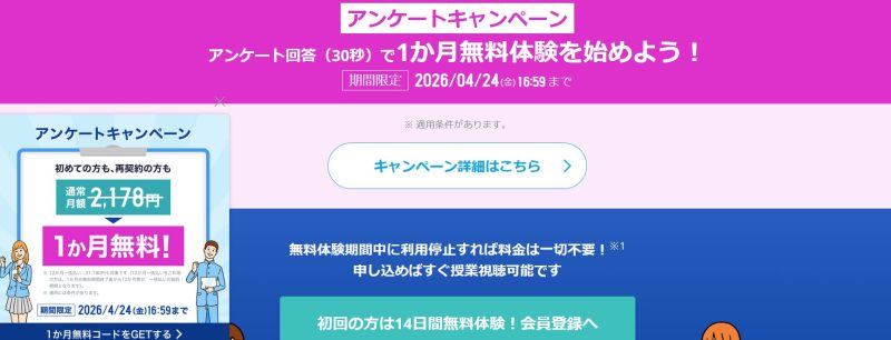 保護者としては「今日現在、どのキャンペーンが使えるか」「コード入力必須か」「いつまで受付か」をチェックしておくことをおすすめします。