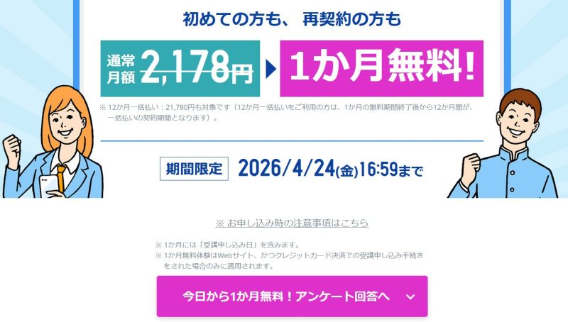 ただし、キャンペーン版では決済方法・コード入力・申し込み期間など条件がやや厳しい点を注意する必要があります。