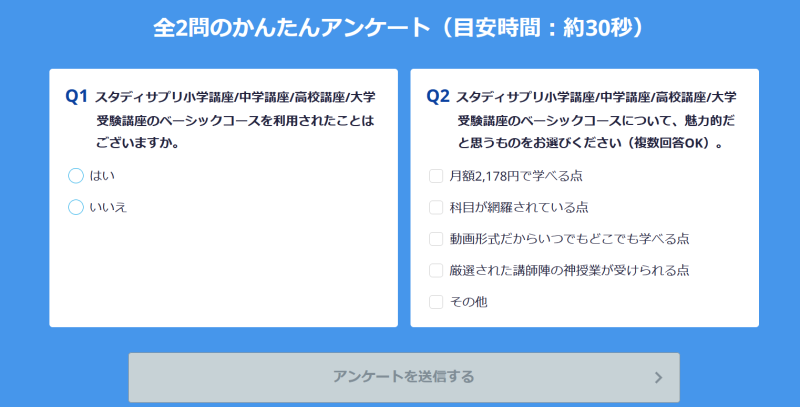4.アンケートに回答し、「アンケートを送信する」をクリックまたはタップします。